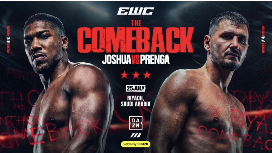 ANTHONY JOSHUA RETURNS FOR COMEBACK FIGHT IN RIYADH ON SATURDAY 25TH JULY